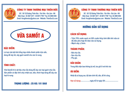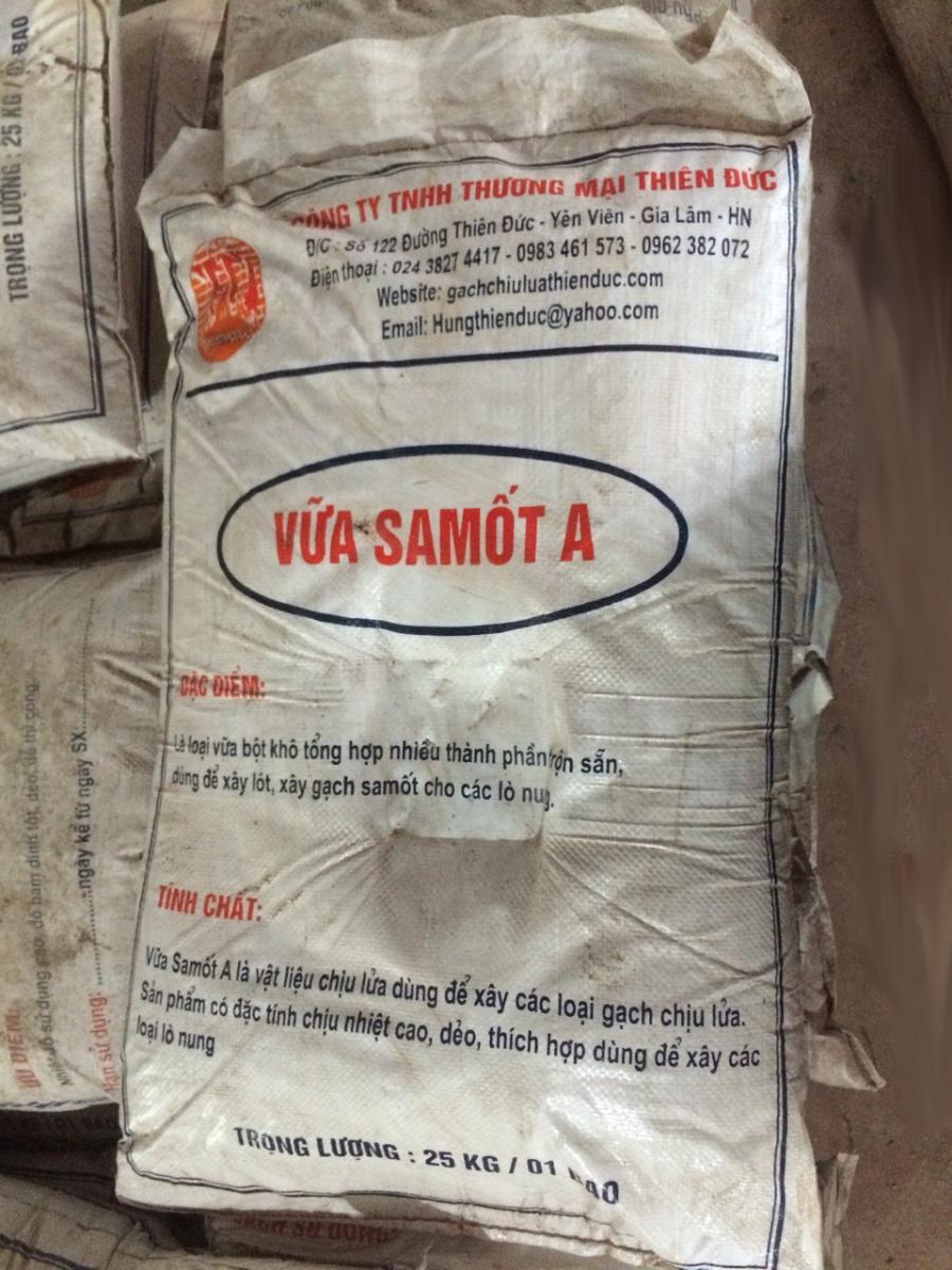 Tính chất : Vữa SaMốt A là vật liệu chịu lửa dùng để xây các loại gạch chịu lửa. Sản phẩm có đặc tính chịu nhiệt cao, dẻo, thích hợp dùng để xây các loại lò nung.